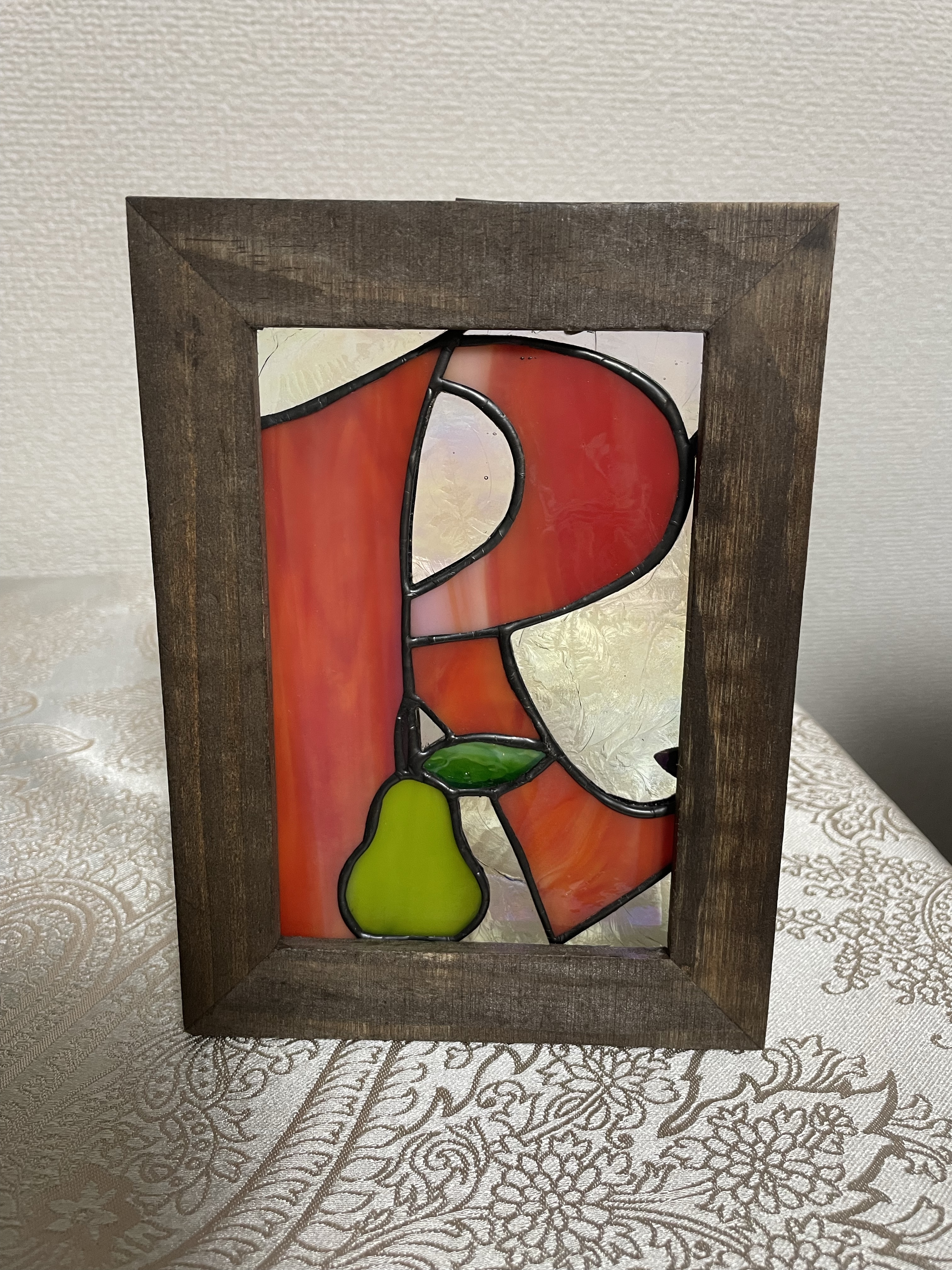 こちらは、洋梨をトレードマークにしているRさんのために作ったものです。オレンジ色もRさんが好きな色。9×13㎝の小さなパネル。
